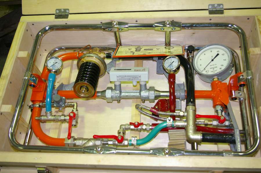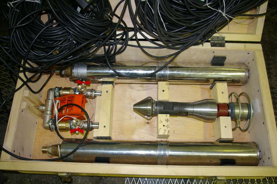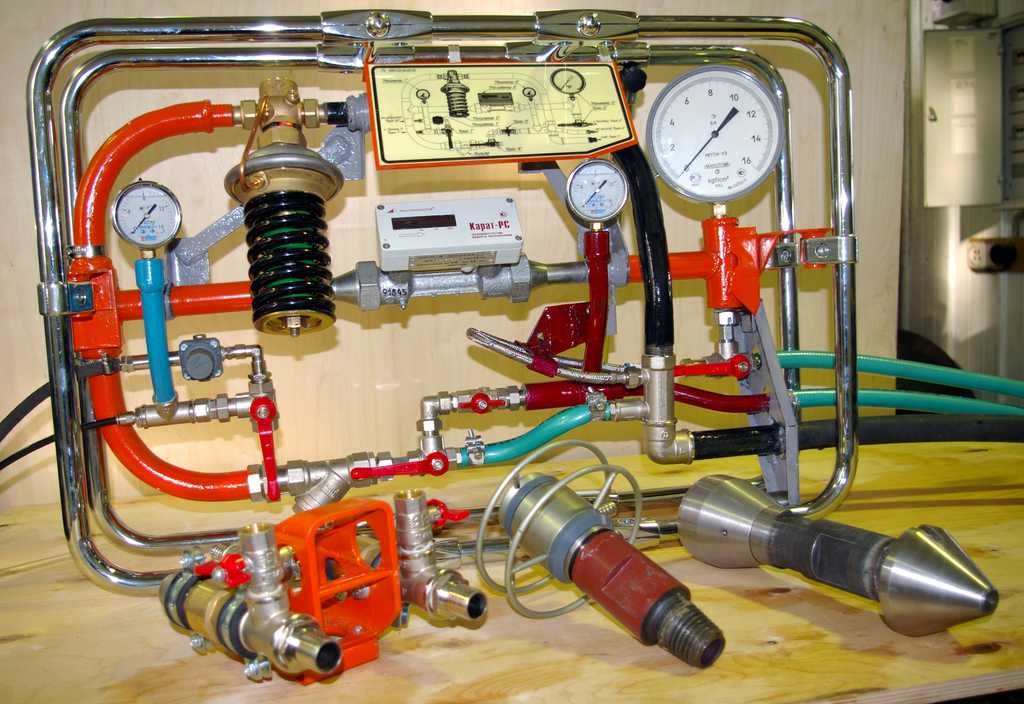 Для выполнения испытаний, вблизи опытной скважины, на поверхности грунта устанавливают Гидробак, Газовый баллон с редуктором и Распределительное Устройство. Собирают Зонд и соединяют все части комплекта, в соответствии со схемой. Далее следует заполнить гидробак водой, установить Насосы и переключить оборудование в режим «Заполнение». Затем, оборудование переводят в режим «Калибровка», и устанавливают требуемые параметры напора и давления в Тампонах, для выполнения опыта.