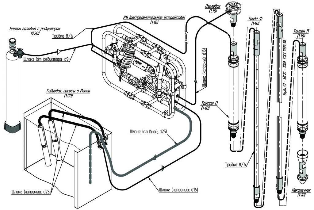 Примечание: Гидробак, Газовый баллон, трубы 42–36Г2С не входят в комплект.