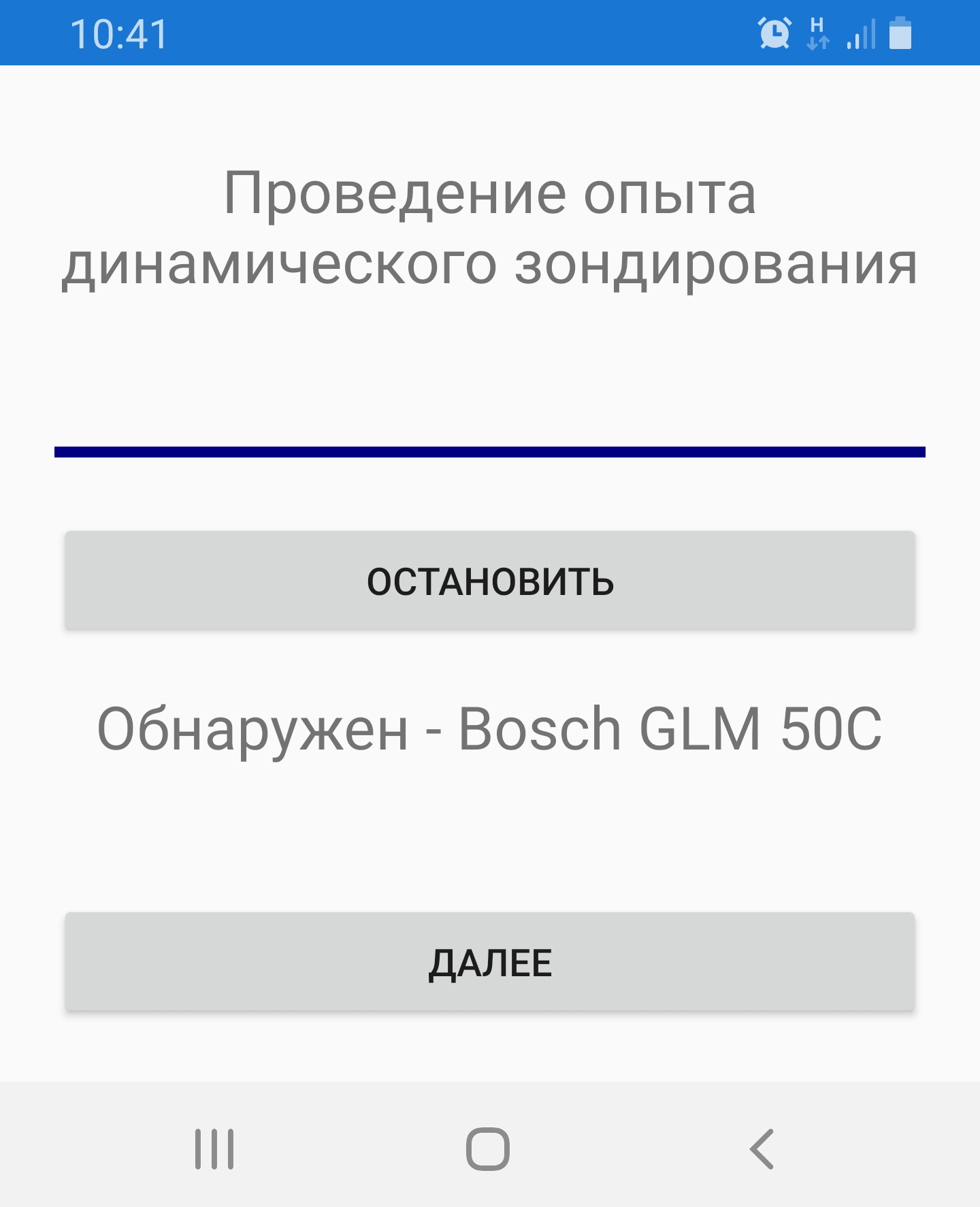 Установить программное обеспечение GeotestAdzFo на Android устройство, включить Bluetooth — адаптер на телефоне или планшете, включить устройство BOSCH GLM 50C и активировать Вluetooth на устройстве. Далее, необходимо запустить Приложение GeotestAdzFo и выполнить поиск устройства BOSCH GLM 50.
