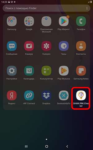 Для работы необходимо запустить ПО Geotest SHWK.PRK.Cheker с помощью соответствующей иконки на экране Android устройства. После запуска на экране будет отображен рабочий экран приложения.